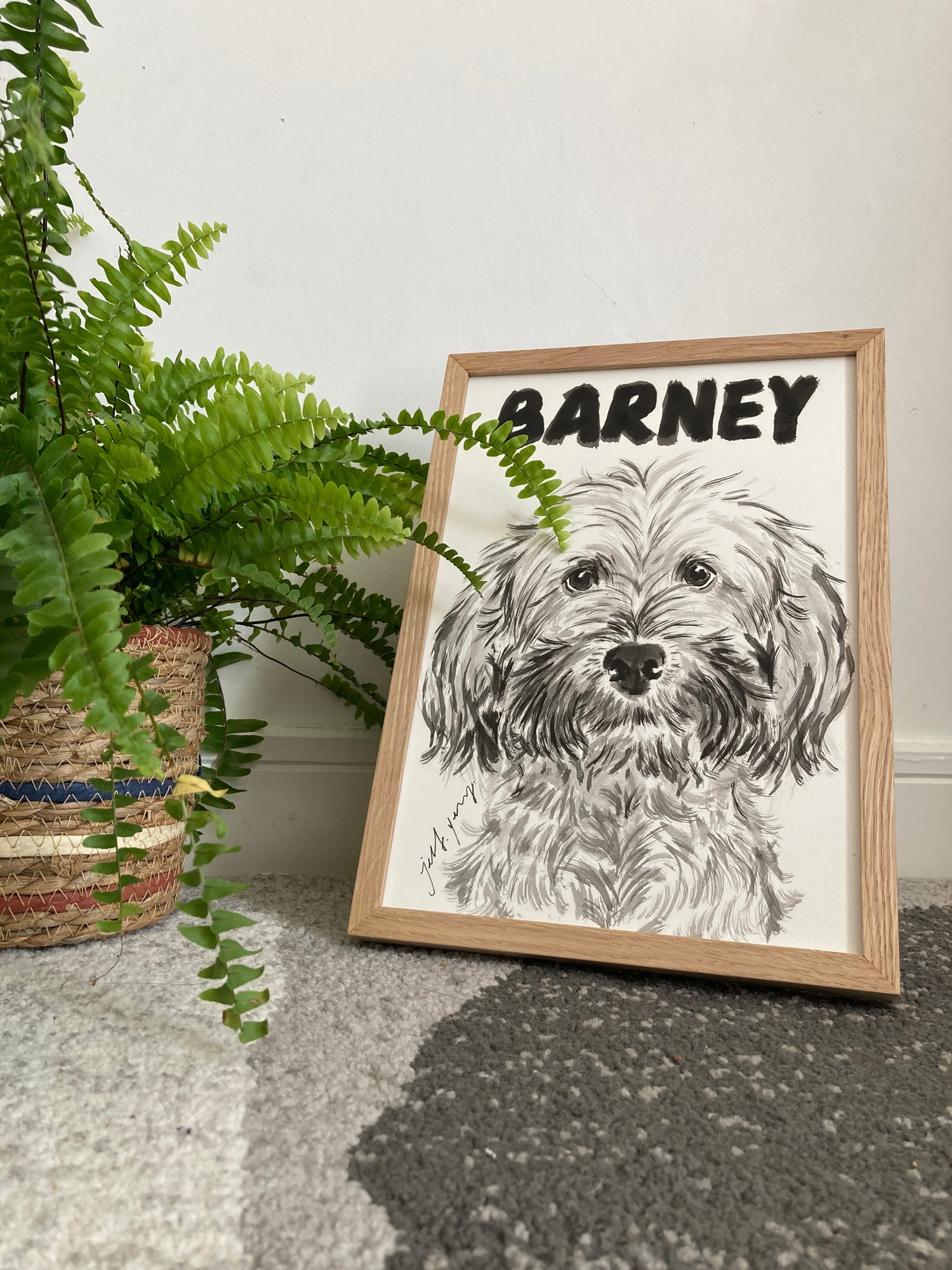 “The portrait was a Christmas present for my dad and he absolutely loved it! It now has pride of place on his desk :) I loved that Jeff wrote a really thoughtful message to me about Coco’s features particularly her lovely eyes and I think he really gets the character of each dog so well - it comes across perfectly in the portrait of her. Thank you so much! ”